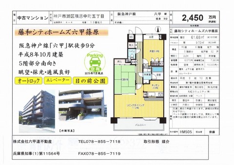 HOME > 終了物件 > (成約)篠原中町5丁目の藤和シティホームズ六甲篠原です!!