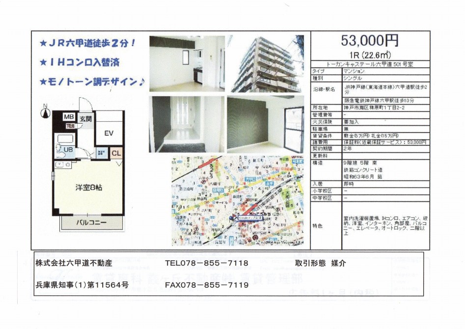 HOME > 終了物件 > (終了)稗原町1丁目のトーカンキャステール六甲道です!!